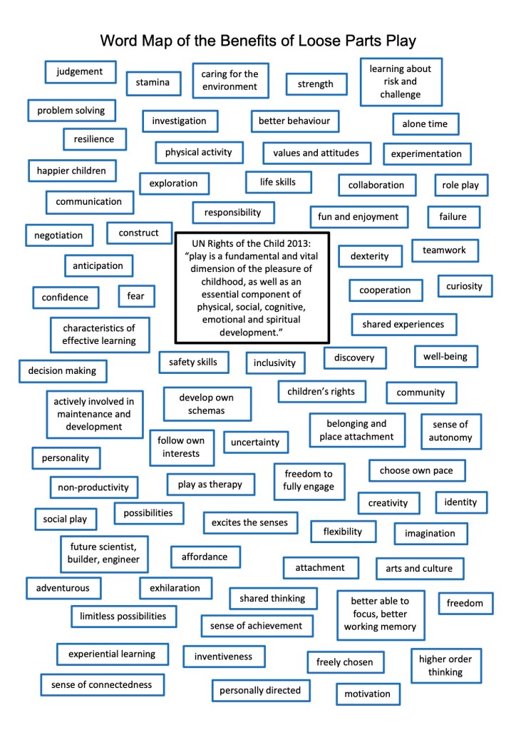 - Be regularly replenished changed and added to. āLoose partsā theory is about remembering that the best play comes from things that allow children to play in many different ways and on many different levels. Environments that include āloose partsā are infinitely more stimulating and engaging that static ones. The play environment needs to promote and support imaginative play though the provision of āloose partsā, in a way that doesnāt direct play and play opportunities, but allows children to develop their own ideas and explore their world.